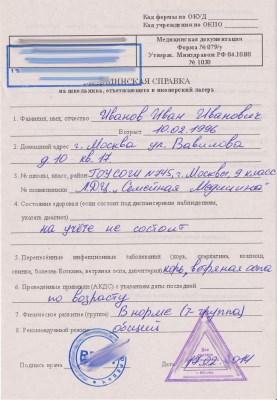 Ее оформление обязательно, при ее отсутствии ребенок будет не допущен на территорию оздоровительного лагеря.