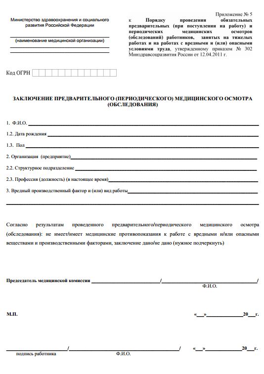 Форма 302н необходима для мест с тяжелыми условиями работы. К ним относятся работы: сварщика, на севере, с повышенной загрязненностью, в шахтах.